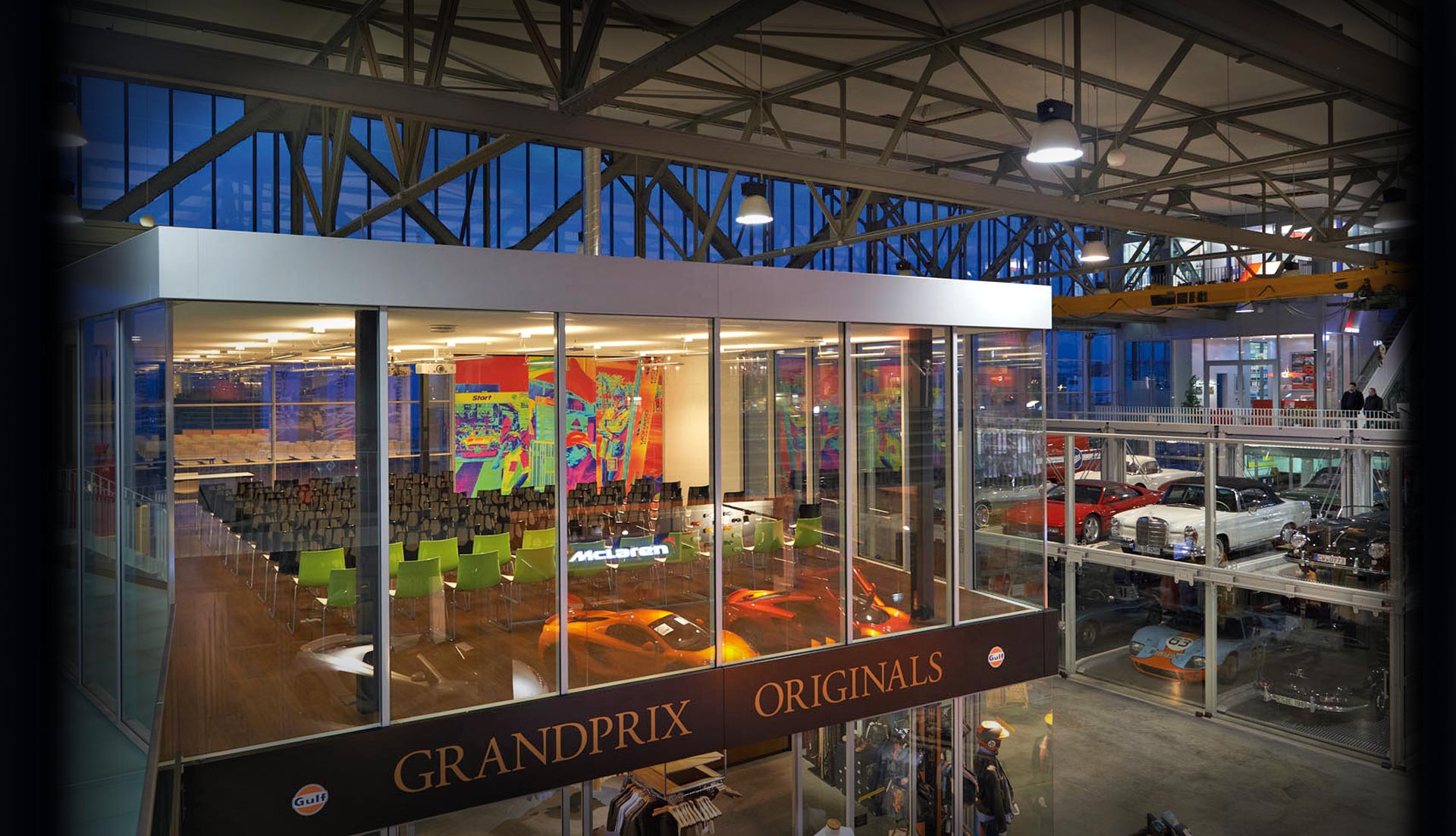 Trinity Church in Stuttgart takes place in Motor World. You walk in and its full of glass boxes of cars like Lamborghini’s, Rolls Royce, etc. Yet in a small fully glass ‘walled’ room, chairs are set up, a few microphones and music stands, and a screen.