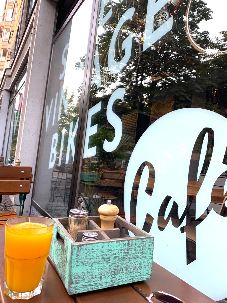 Metropol told me I was finally done with trains and my Airbnb was just down the street. The elevator there was super small and sketchy. But better than walking 6 floors. Found a Los-Angeles Platz where there were roses and nice bench to relax – thought about mom. Had some really good pancakes and amazing fresh orange juice at Steel Vintage Bikes Cafe I found when searching ‘pancakes.’ Splattered this chocolate sauce all over my favorite tank top at 9 am. Cool. Cool elephant arch at the zoo. Rausch Schokoladenhaus was overwhelming. You can make your own chocolate bar here too. &The best gelato Ive ever had.