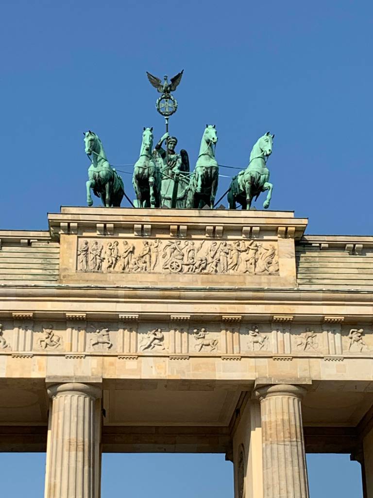 Brandenburg Gate was cool to see in person. Went at 9:30 and again after 10:30 and there were 4x as many people. Busy site. Found some old photos of the gate during the war. Really crazy what was destroyed and how they turned it all into what it is today.