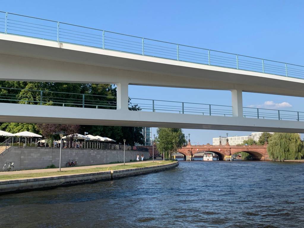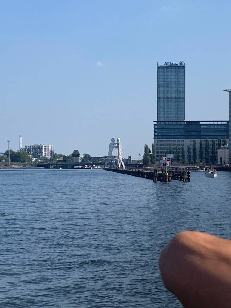Wouldn’t recommend this 3-hour tour even though my Airbnb host raved about it. Interesting but the audio thing didn’t work the best and I would have rather had someone sitting next to me to tell me what the narrator was saying. Cool things though. Saw the East Side Gallery of the Berlin Wall. The three white men sculpture is called Molecule Man, designed by American artist Jonathan Borofsky, also located in Council Bluffs, Iowa. Most bridges were destroyed across the canal during the time of East/West Germany. Oberbaum Bridge is made from original pieces which divers brought up from the canal including original brick and the metal pieces. Important marking of unity for the city today. Really cool that they ensured it was rebuilt as it should have been.