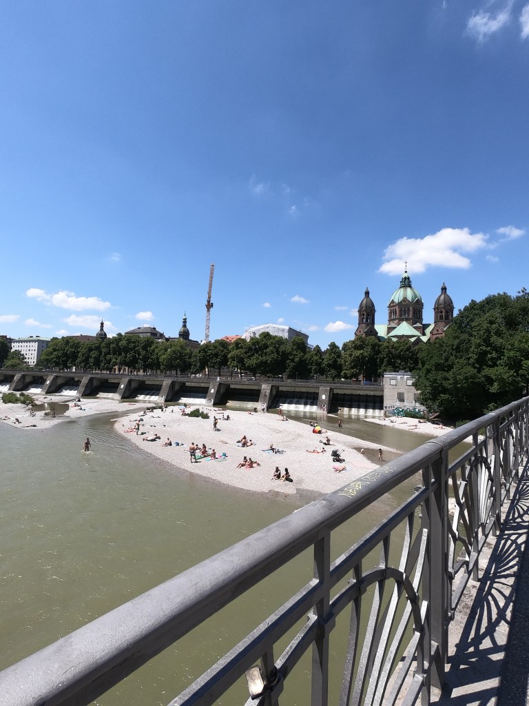My first stop was the Hi-Sky Ferris wheel hoping to see views of the city like the big one in Vegas. Unfortunately it was closed. I made my way west back toward the city center and walked along the Isar river. The walk was nice on a side bridge and through a park area. Lots of people enjoying the nice weather in the river bed.