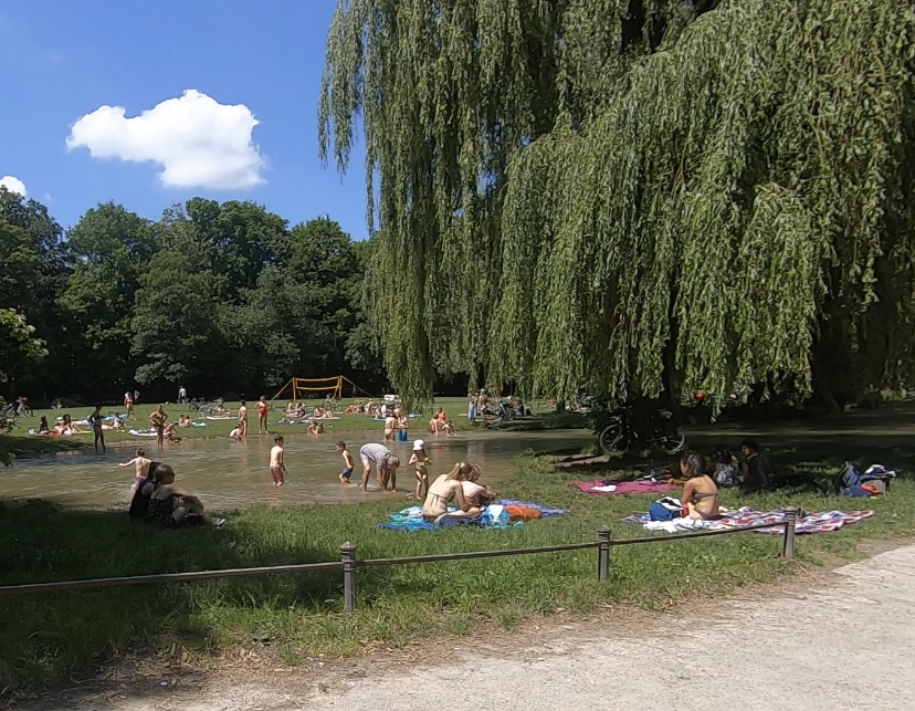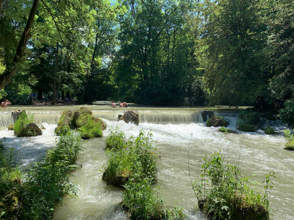I continued down the trails through what opened into the Englischer Garten. It was packed with people sunbathing, playing badmitten or frisbee, and enjoying a beer with friends. The river runs all the way through the park so some people were floating along in tubes and kids were playing in the water. It was such a nice, chill area everyone was taking advantage of. I also saw the Monopteros, a Greek style temple that seems to be an important landmark. Not impressive, but I’m not easily impressed with architecture and at this point I wasn’t walking up that hill to see it any closer.