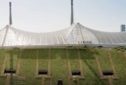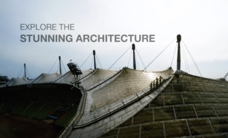 There was no red or brown used in the Olympic theme color palate in order to avoid association with political agendas and propaganda. This, along with building the magnificent park area, was intended to tell the world that Germany recognized their faults from the war and was now a welcoming and good place to visit again. The hilltop which overlooks the whole park was, or rather still is, a pile of war debris rubble moved here from the city center after bombings destroyed much of the city. During the design of the park this was included to cover in grass to avoid the eye sore and reminder of war. One of the primary design aspects was reusability of the park. This meant everything should serve a second and successful purpose after the olympics was over in order to host future events and continue to welcome people from near and far. This design specifically hosted open and inviting facilities which was done by building into the ground so people didn’t feel small standing next to them, rather they felt like part of the design and event when they entered an arena. This was specifically supposed to be opposite of the olympic stadium from the 1936 games in Berlin, built more like a colosseum with streets directly to it, which was taken advantage of during that time for political agendas, speeches, and military parades. The original design didn’t have chairs so in 2002 these multi-shaded green chairs were added which is supposed to resemble the rolling hills of green grass around the park and on the hill.