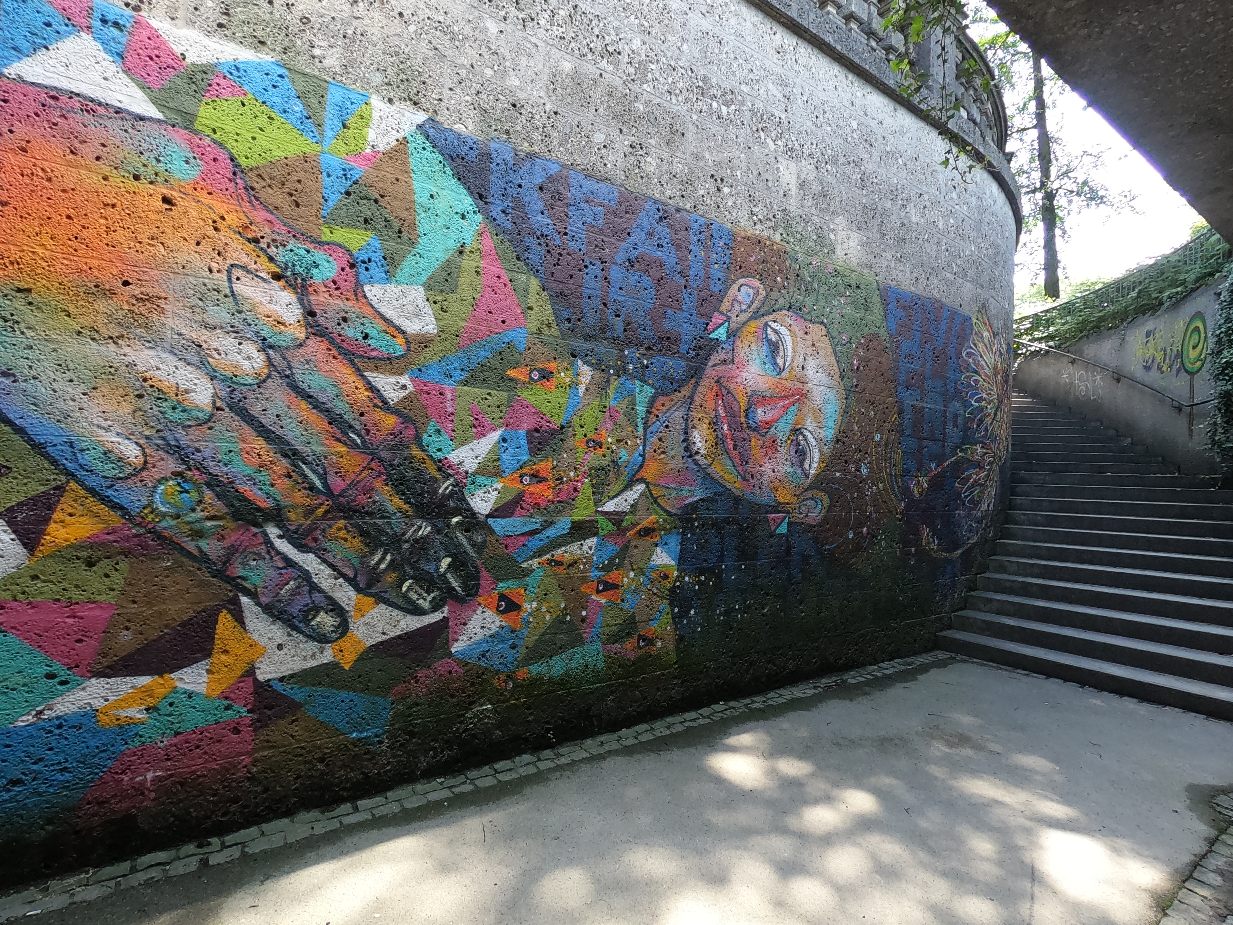 Stopped to walk around the Friedensengel, a statue of a golden angel on a column noted as a monument to peace. This reminded me a lot of Berlin because you had to walk underground from across the street to get to this point, which had a tunnel full of great painted artwork.