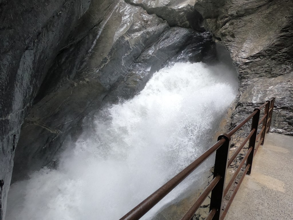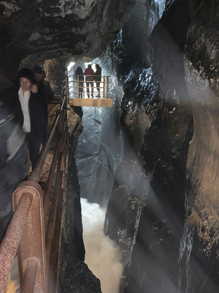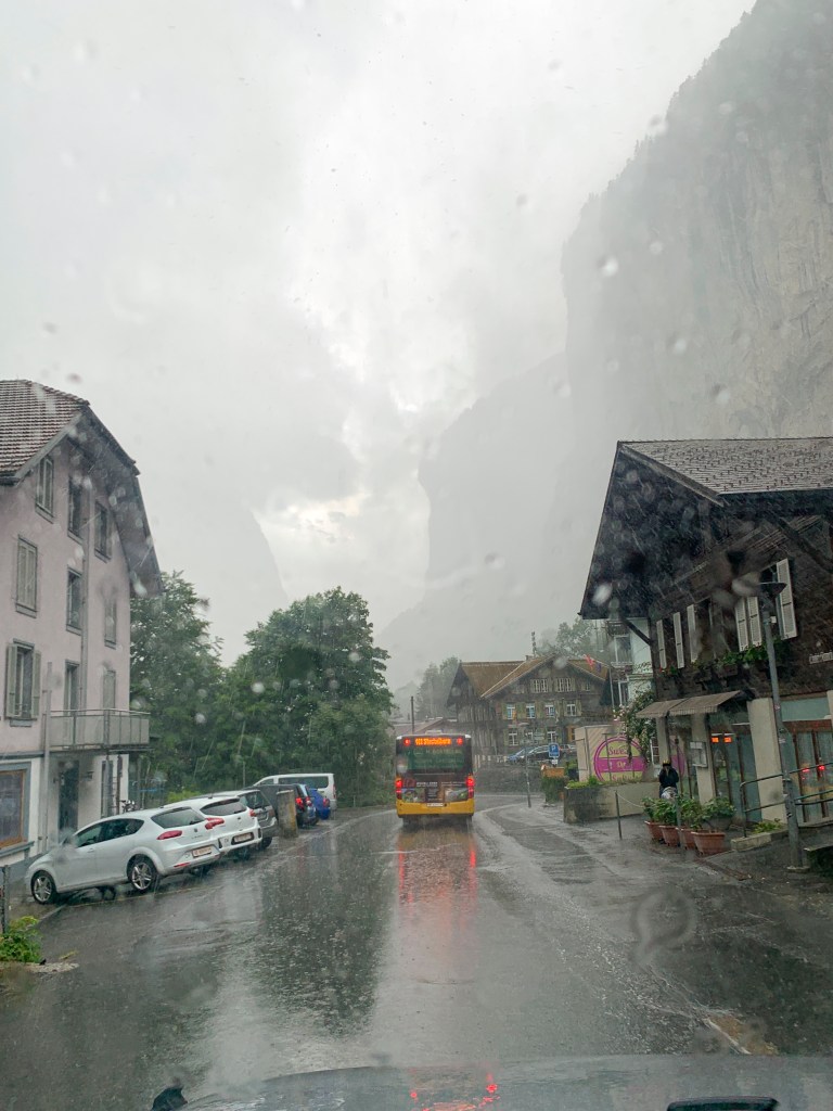 Originally I wanted to spend all day here again and planned to drive late to the next place but at this point I’m really not enjoying anything because I can’t see anything and it was 20° warmer where I was headed south toward Italy so I took off earlier. I did stop to see the Trümmelbach Falls which was really incredible actually. I loved it more than I thought I would and would really recommend it. The water is loud rushing through the cave-like atmosphere and it’s so cold! But it was really awesome for as simple as it was.
