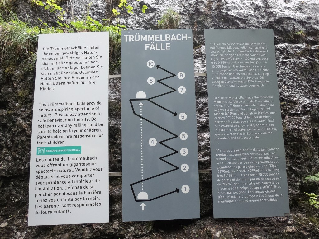 Travel info: The gondola lift ticket from Lauterbrunnen to Mürren cost me $23.75 and the Trümmelbach Falls entry was 11 CHF ($11.70).
