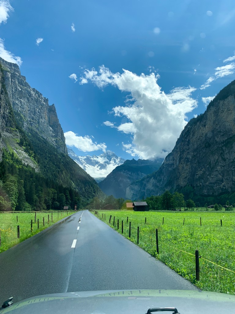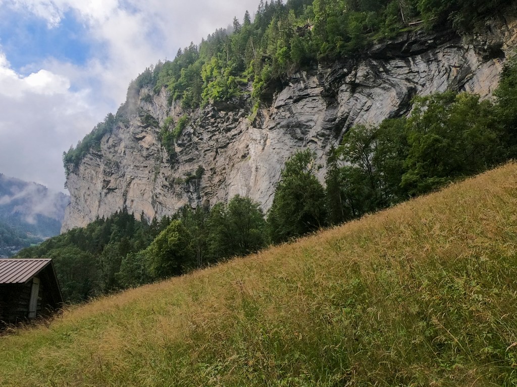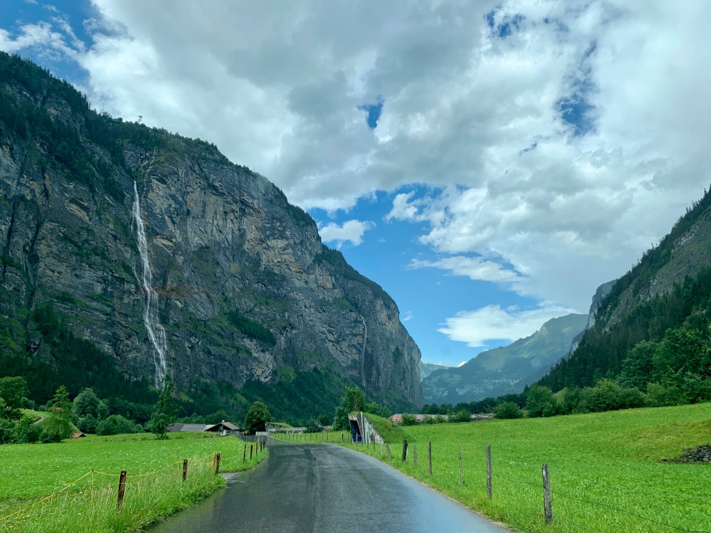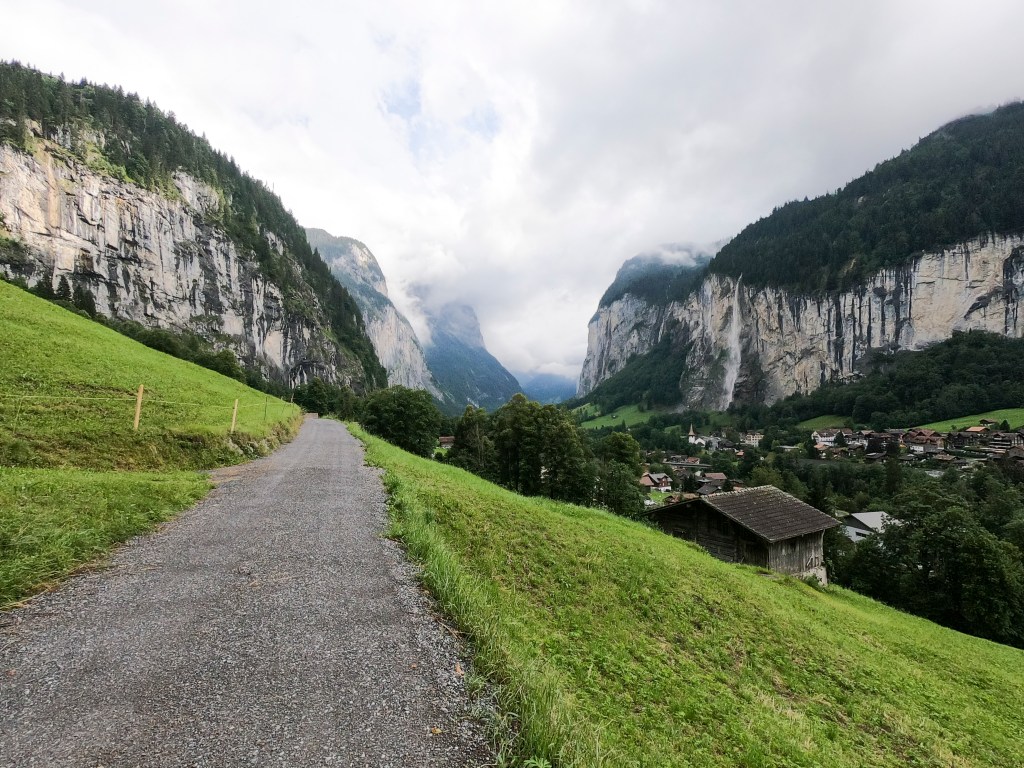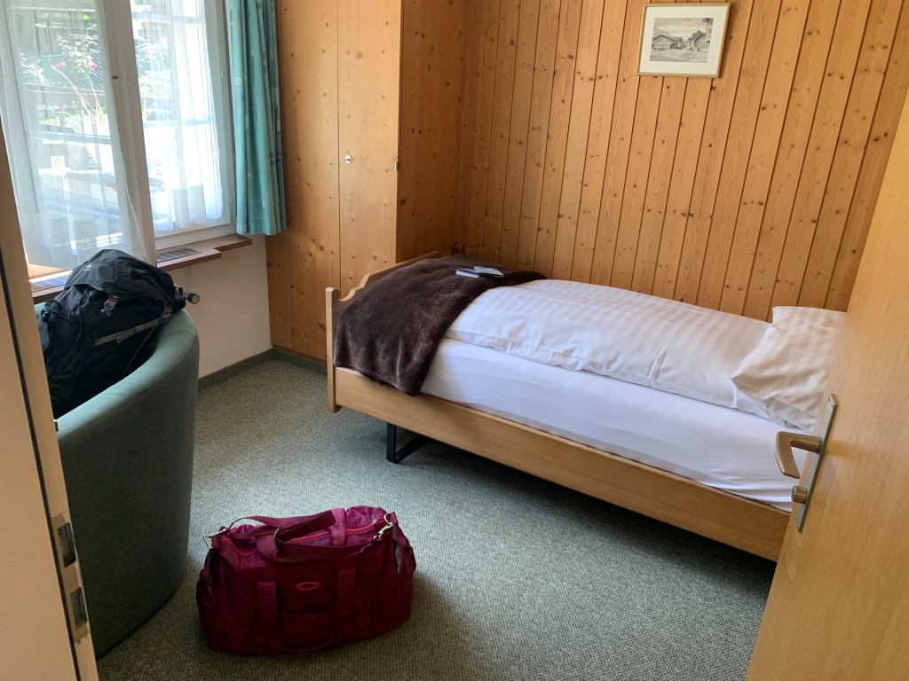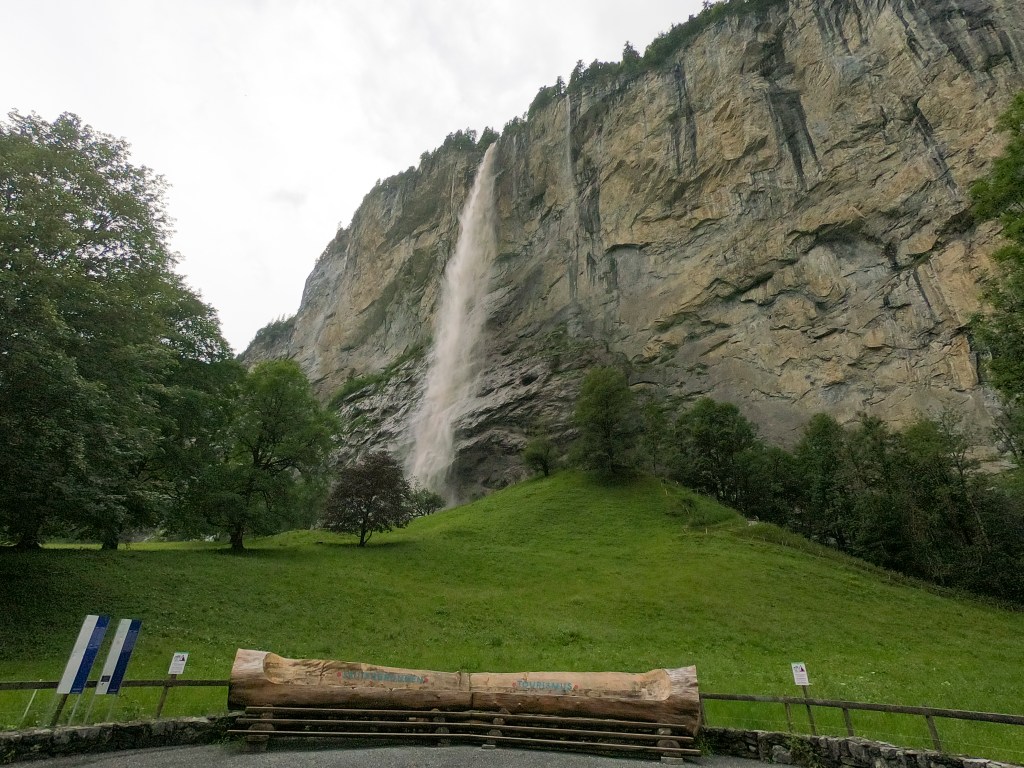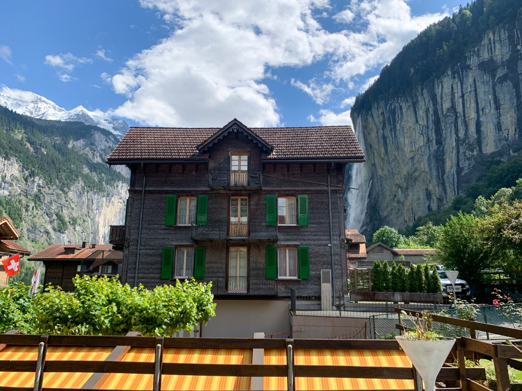Thankful for very easy parking right across the street from the hotel. Super easy checking in with a very nice lady who spoke great English and had lots of good info about things to do in the valley. She told me I could use a week there to see it all, not just one day, she wasn’t wrong! I quickly got into my cute little room, dropped my stuff, changed, packed my hiking bag, and headed out to see everything I could. Went to Staubbach Fall and went on a trail with built in stairs behind the water. I went on a hike around the countryside and enjoyed the views and suffered through the humidity.