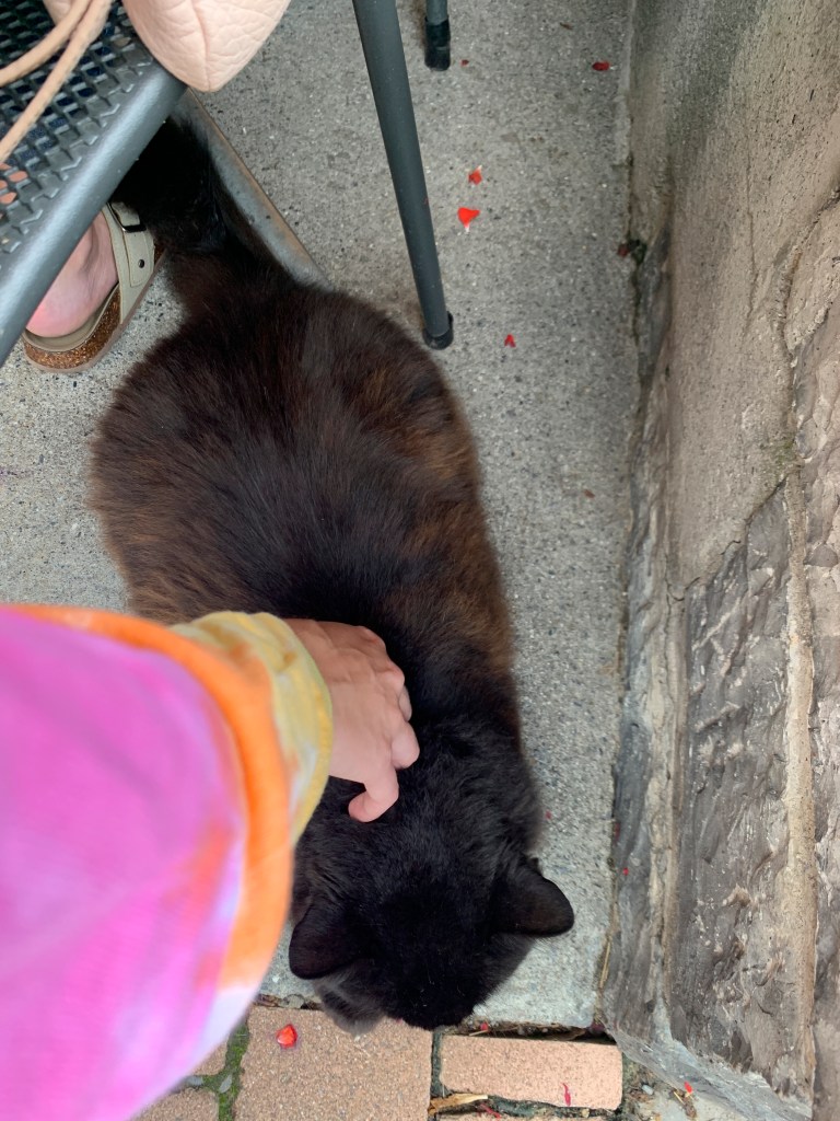 Finally made my way back to the hotel at 7 to shower and had dinner outside on the hotel patio. Really great food and tried a new beer that actually wasn’t terrible. Friendly restaurant cat wandered around and got lots of attention, reminded me of Sam Hooper’s cat, Shadow. Figured I should go out for another walk because I still had at least an hour of daylight left; luckily I did change out of jeans and sandals and put on a new pair of hiking pants and my hiking shoes. However as I headed out for what was supposed to be a 30 minute walk to a viewpoint, the rain started and then was really heavy by the time I got to the point so the view wasn’t clear and by the time I got back to the hotel my pants and socks were completely soaked. Turns out my new pants are not waterproof at all. Good to know. Finally got some rest while I planned the next day’s adventures.