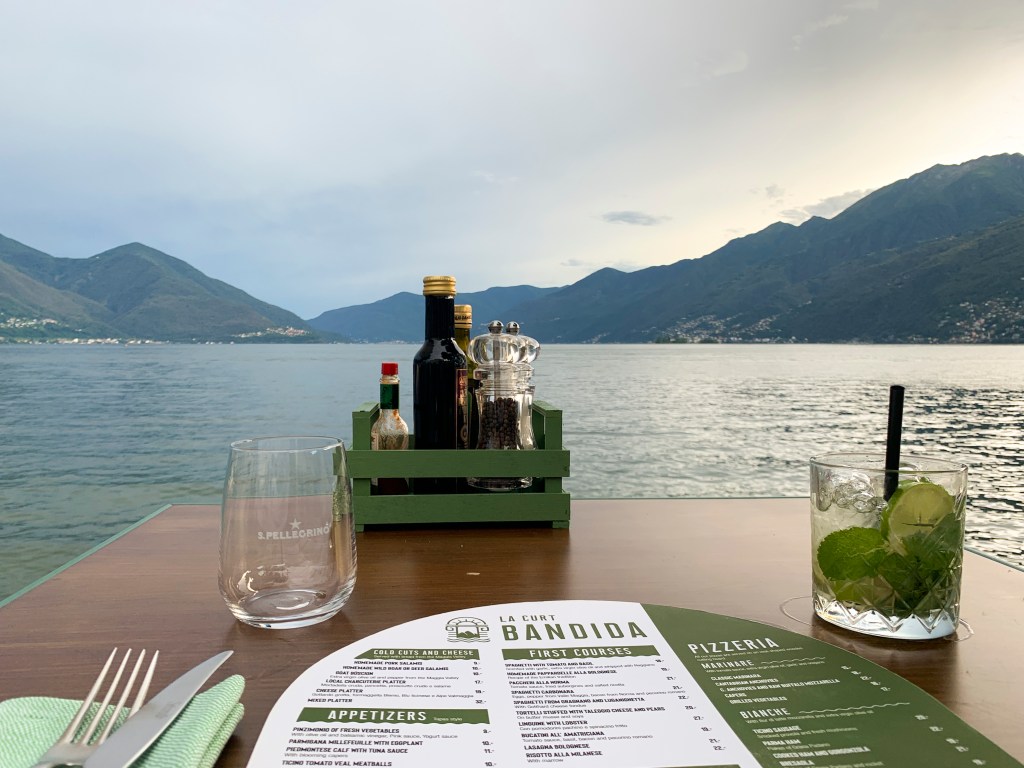 The first night in Ascona I was eager to get out and enjoy the warm weather. I made my way down to the lake which was a short walk from my hotel. The water was beautiful, the ‘boardwalk’ was lively and the weather was wonderful. I walked up and down the strip a couple times, taking it all in. I finally settled at a place where I had to wait about 15 minutes to get a table, but it paid off. I got a table alone right on the edge of the water and enjoyed my view for evening with good food and a $10 mojito.