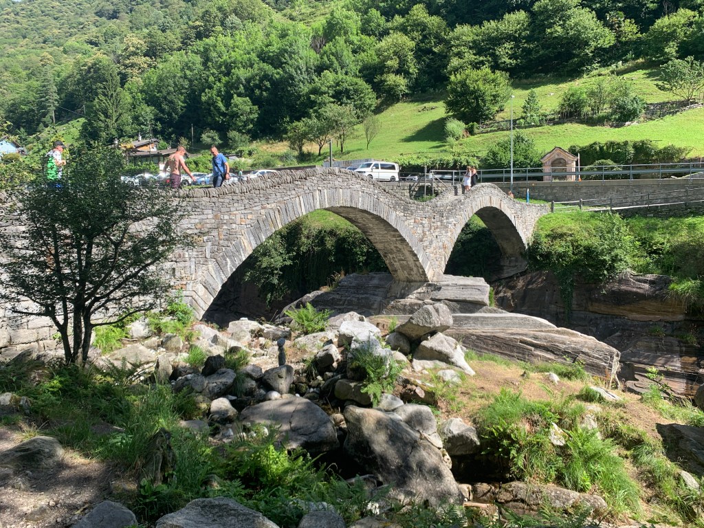 The next day was going to packed with hiking and sites. I took off early to get all the way to Valle Verzasca. Luckily since I got there early it wasn’t too packed yet and I got a parking spot. I remember this being especially annoying because I only had a few CHF left for the parking meter so I didn’t get much time here. I stopped to walk across the bridge that made me come all the way here. I saw this posted by Danny Tanner (I mean Bob Saget) on Instagram so I knew it was worth stopping at, I had no clue how popular it was, especially on a really hot day.