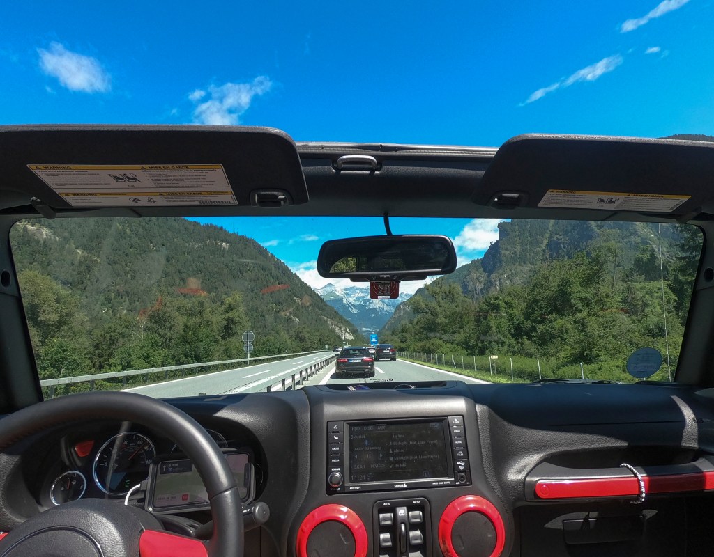 The last day I took my time getting up, drove over to Locarno just a few miles away but with a different view of the lake. I stopped at a cafe for breakfast. I’ll never get used to seating myself at these places but as I sifted through the menu I couldn’t find anything in english, so I asked for one, they didn’t have one, which only bothered me because they were playing Tom Petty on the restaurant speakers. So I got a cappuccino and a croissant and enjoyed the weather again. Before taking off the for the long drive home I realize one route would take me right along the west side of Lichtenstein, a tiny country between Switzerland and Austria. I decided to take that route, took the top off my jeep again and headed north.