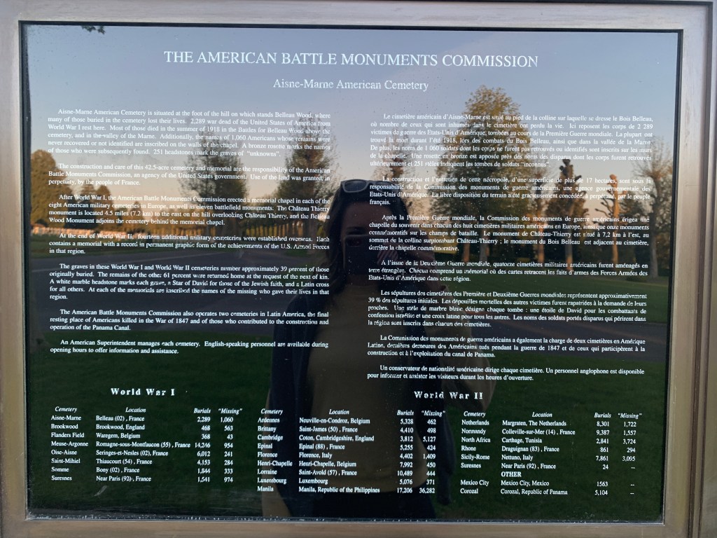 This Marine is buried here in this cemetery because he actually survived the war but had such bad survivors guilt and PTSD that he came back to the grounds after the war and committed suicide. Because he didnt die from the war he wasn’t allowed to be buried on the ABMC grounds but the people of Belleau allowed him to be buried in their town. It was so nice that we still honor this Marine.