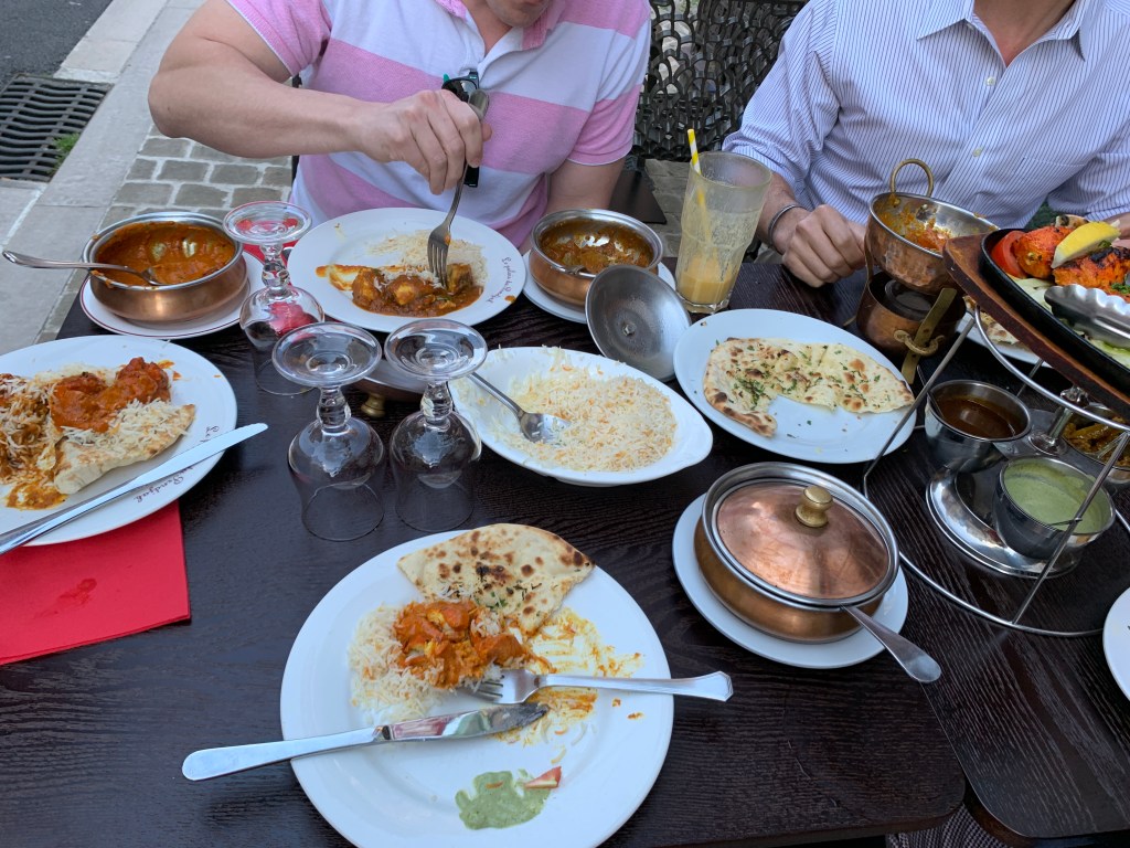 After tastings we were all out the door to find something for dinner. The restaurant we wanted to go to was completely packed with no chance of getting in, and with a curfew coming soon it was off to find anything available. We ended up at a small Indian restaurant, a couple tables down from the CWO, Col, and BG from just a bit before. I had really been craving Indian food but don’t think I’ve had it since I was in Africa in 2015. I was hesitant what to get but decided on the butter chicken. It was the best Indian food I’ve ever had. (updated end of June, after two other local German Indian places and still the best) We ordered so much naan it was stacked four high, we had tons and tons of rice. It was so great. We quickly paid and hurried back to the hotel before curfew.. even though not everybody was following the same rules.