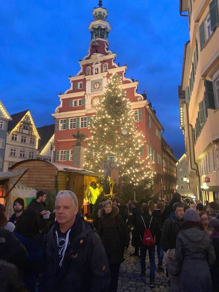 Lots of lights here, ice skating rink, my first Christmas Market on it’s opening day. Pretty cool experience, lots to take in. Several booths with all kinds of things to window shop and actually shop until you drained your savings. Lots of food choices and my first taste of gluhwein (warm, mulled wine).